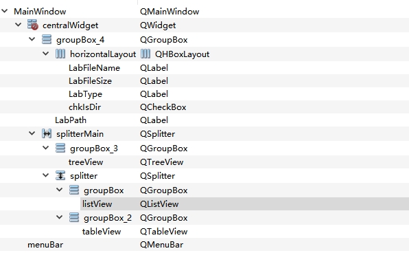 话不多少,上代码部分,本例子基于 QWainWindow 使用QFileSystemModel 模型,当然在mainWindow.h首先添加对应的