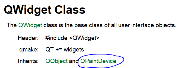 前面几个例子中,QPainter painter(this)之所以可以这么写,是因为QWidget也是一个绘图设备,因为他继承了QPainterDevice。