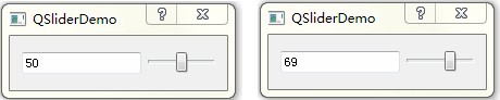//信号和槽 当滑动条的值发生改变时,即产生一个valueChanged(int)信号 设置QLineEdit控件的显示文本 -