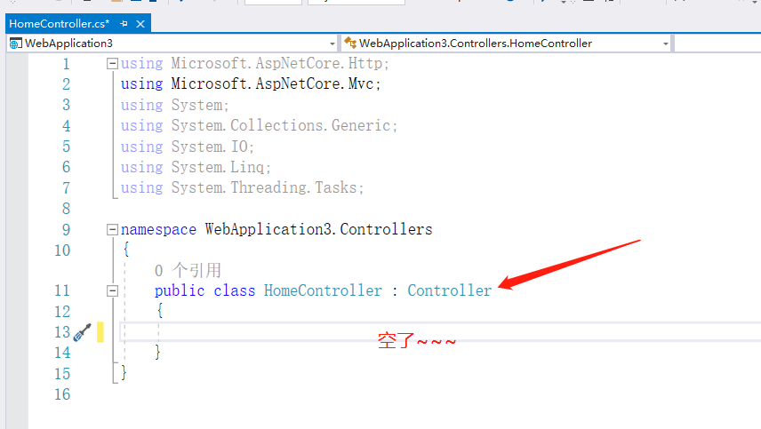 打开 HomeController.cs 文件,删除所有方法