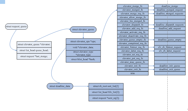 deadline,顾名思义是说有个最后期限控制。通过调研也发现对于每一个读请求和写请求都会赋予一个时间戳,用来控制一个最大的延迟处理时间点。超过该时间戳是一定要处理的。它是通过一个链表(first in first out)来将这些request串联起来的。