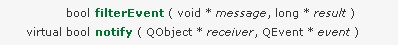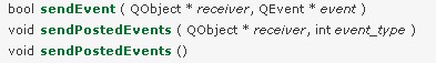 我们看看QCoreApplication中定义的一些函数,这些函数就是我们经常遇到的那些与传递事件和过滤事件有关的函数,见下图: