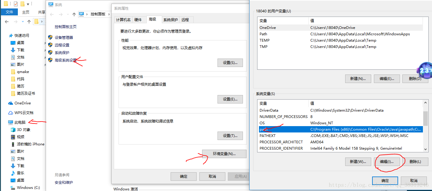 1.7我的电脑 右击属性 高级设置 环境变量 找到path 编辑 添加刚刚的路径