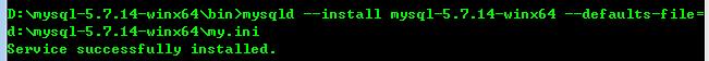 注册服务(注意以管理员身份操作:在我的电脑中打开“C:\Windows\System32”,找到文件“cmd.exe”,右键点击,选择“以管理员身份运行(A),进到目录“D:\mysql-5.7.14-winx64”,然后运行以下代码)