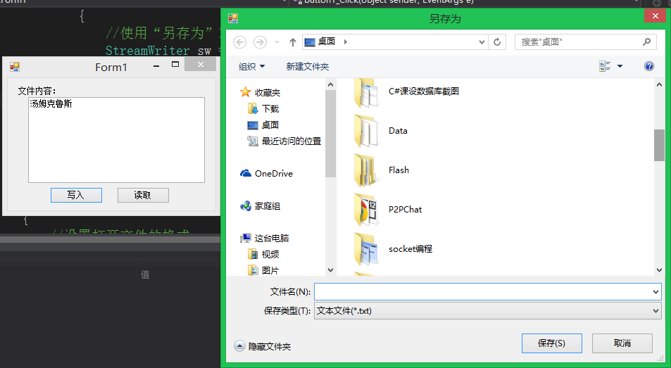点击写入button,出来另存为框,即前面所说的OpenFileDialog控件的显示