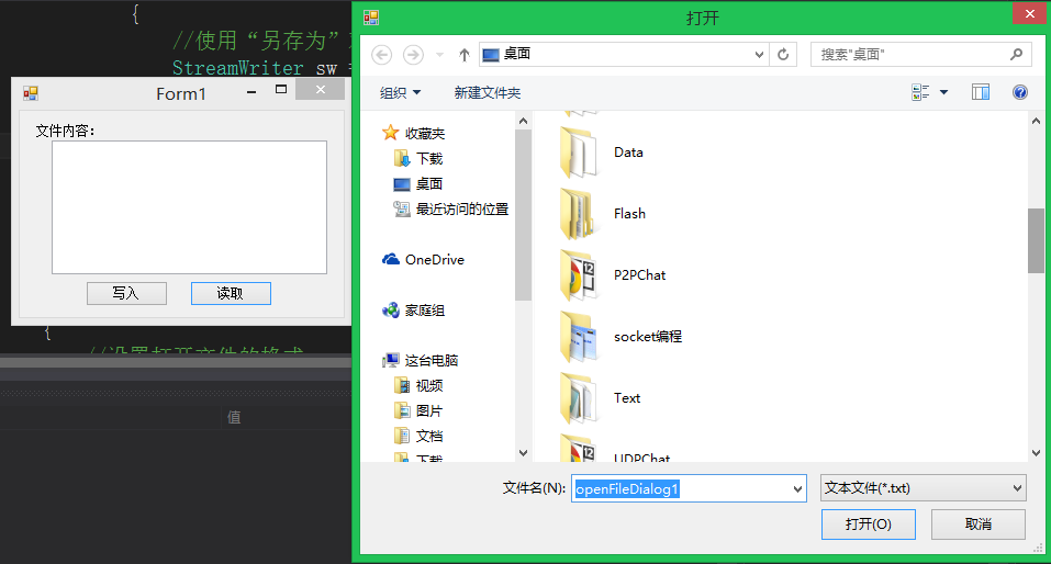 点击读取出来打开框,即前面所说的SaveFileDialog控件的显示
