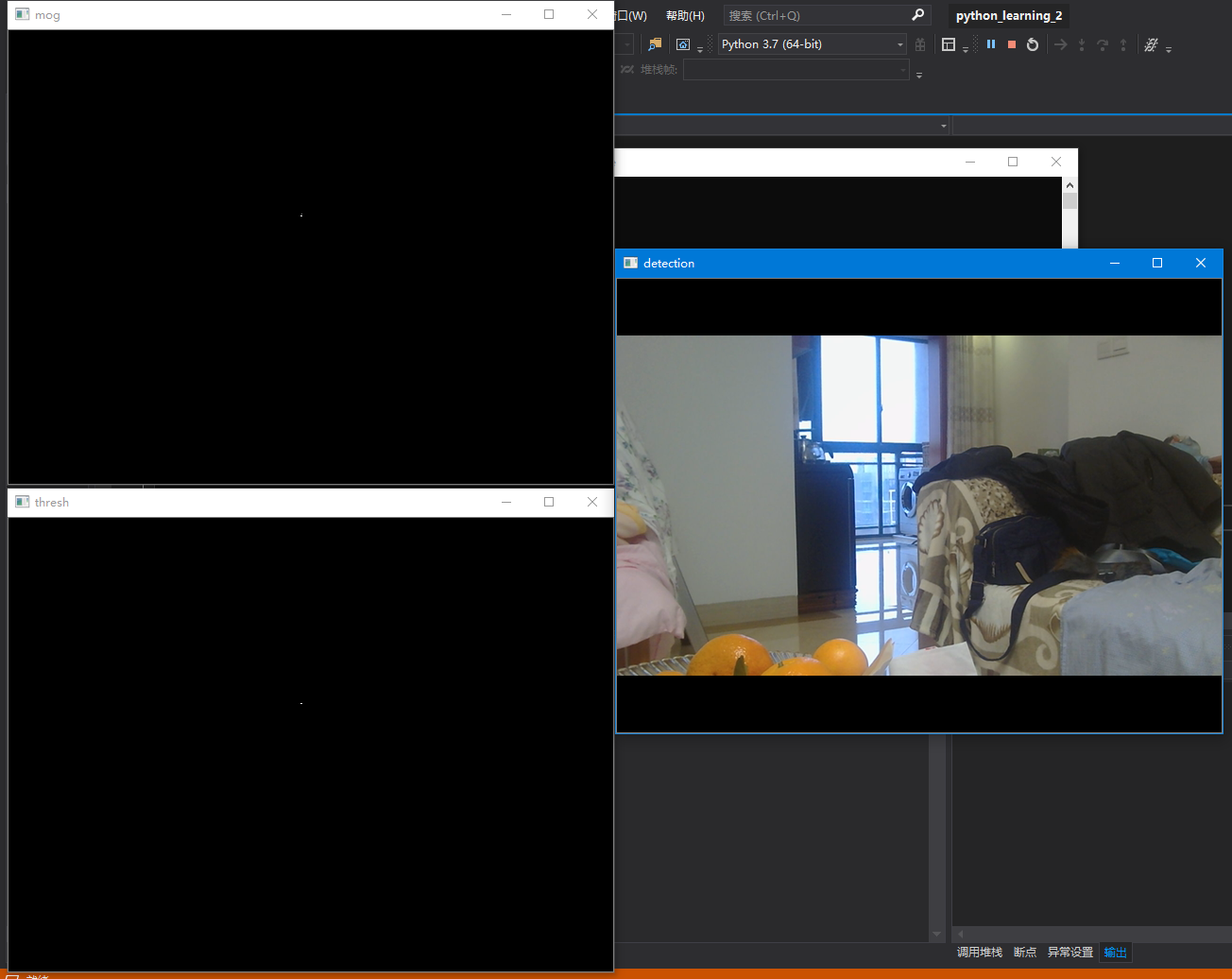 本代码实现的功能是检测固定背景中,新出现的物体,可静可动。