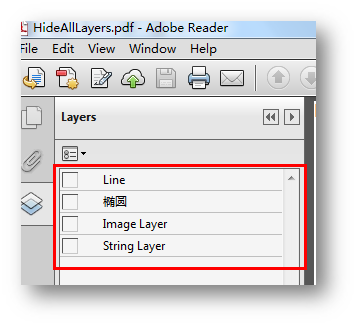 using Spire.Pdf; using Spire.Pdf.Graphics.Layer; namespace HideOrShowLayer_PDF { class Program { static void Main(string[] args) { //实例化PdfDocument类,加载文档 PdfDocument doc = new PdfDocument("AddLayers.pdf"); //设置图层可见属性为Off,通过索引值来隐藏第3个图层 //doc.Layers[2].Visibility = PdfVisibility.Off; //设置图层可见属性为Off,通过图层名称来隐藏图层 doc.Layers["String Layer"].Visibility = PdfVisibility.Off; //保存并打开文档 doc.SaveToFile("HideLayer0.pdf"); System.Diagnostics.Process.Start("HideLayer0.pdf"); } } }