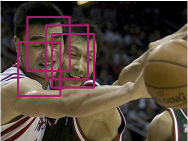 (3)使用NMS对上面的检测结果进行融合(因为一个目标可能被检测出多个窗口,而我们只希望保留一个)。