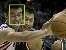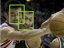 如果,我们的IOU阈值设定的特别小,比如说0.1。那么2个人的窗口会被归为一个人而被融合。得到下面的错误结果: