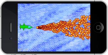 下图的例子使用了CCSpriteBacthNode。屏幕上同时有几百颗子弹飞过。如果一次只渲染一颗,那么帧率马上降到85%。使用CCSpriteBatchNode,可以避免这种情况:
