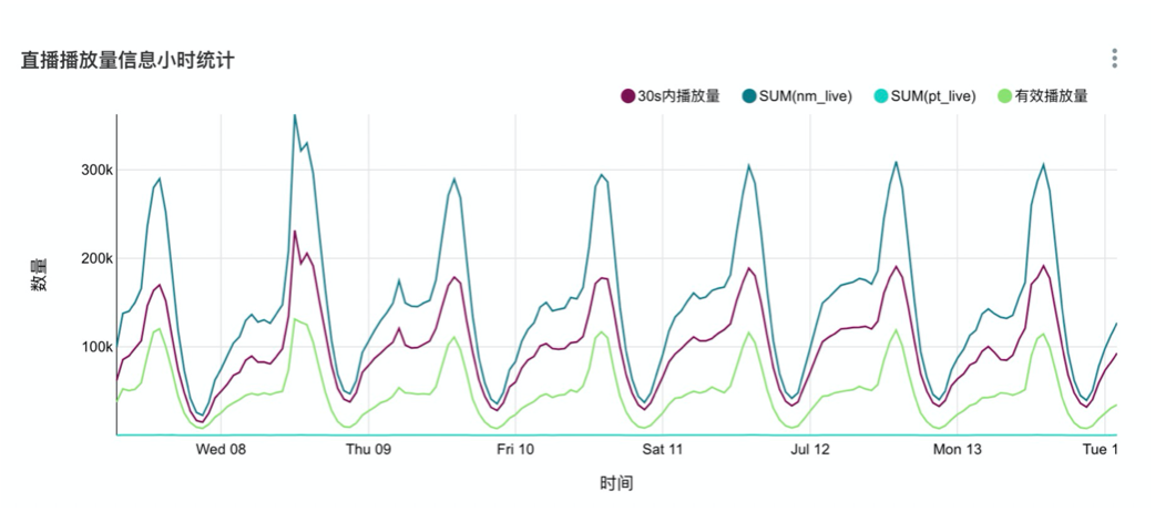 实时数仓第二个典型的实践是实时报表,如上图所示,网易云音乐直播播放量的统计表格。实时报表建立任务更容易,数据问题定位更清晰。