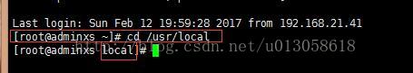 假如我们现在需要进入的是usr文件的local文件中我们就需要使用:cd /usr/local,来进入,这个时候我们就显示已经进入了local这个文件下面,需要注意的是在root根目录下进入其他文件时需要在最前面加上斜线“/”,在其他任何二级甚至多级目录下都是可以不加直接进入的。