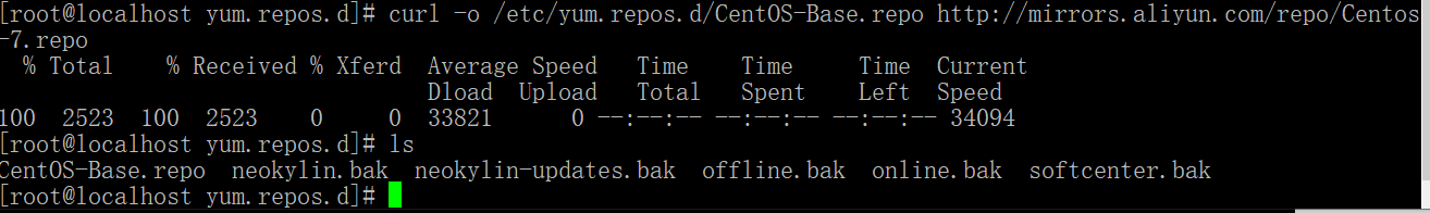 4.下载阿里yum源 curl -o /etc/yum.repos.d/CentOS-Base.repo http://mirrors.aliyun.com/repo/Centos-7.repo