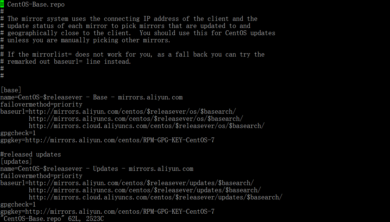 5.打开CentOS-Base.repo文件 vi CentOS-Base.repo