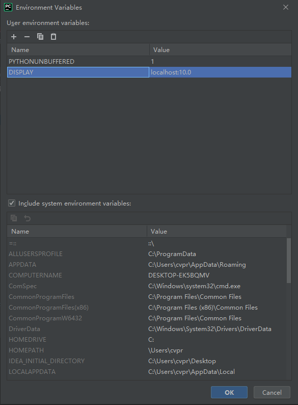 注意:这里查看服务器DISPLAY参数,最好用远程会话工具操作,因为我的电脑在Pycharm的打开的会话中,不能显示出参数。很迷。