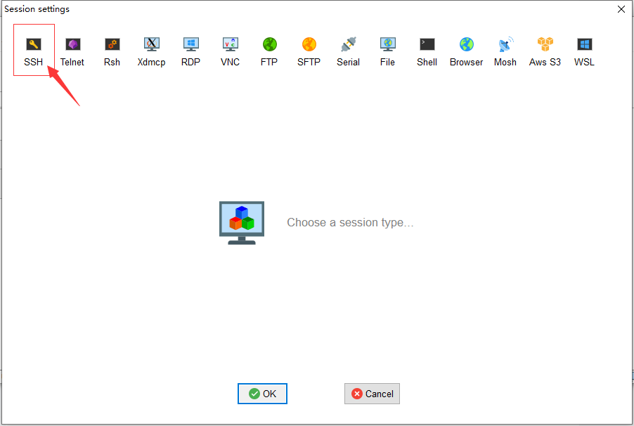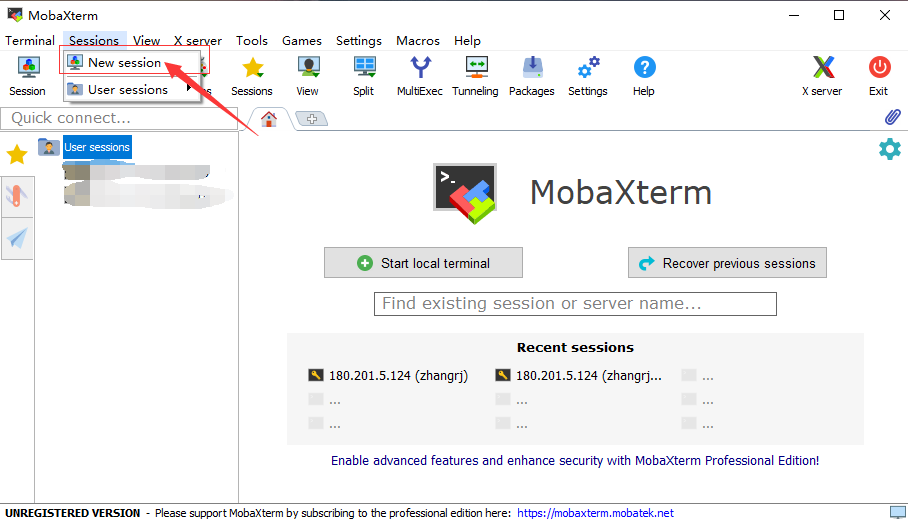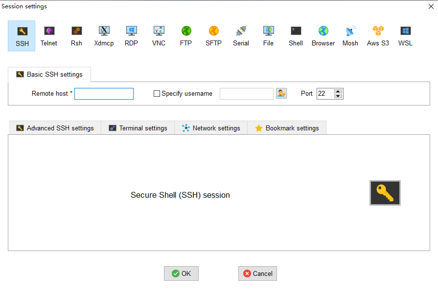 双击应用程序,启动应用。选择Sessions -> New session进入session settings 界面。