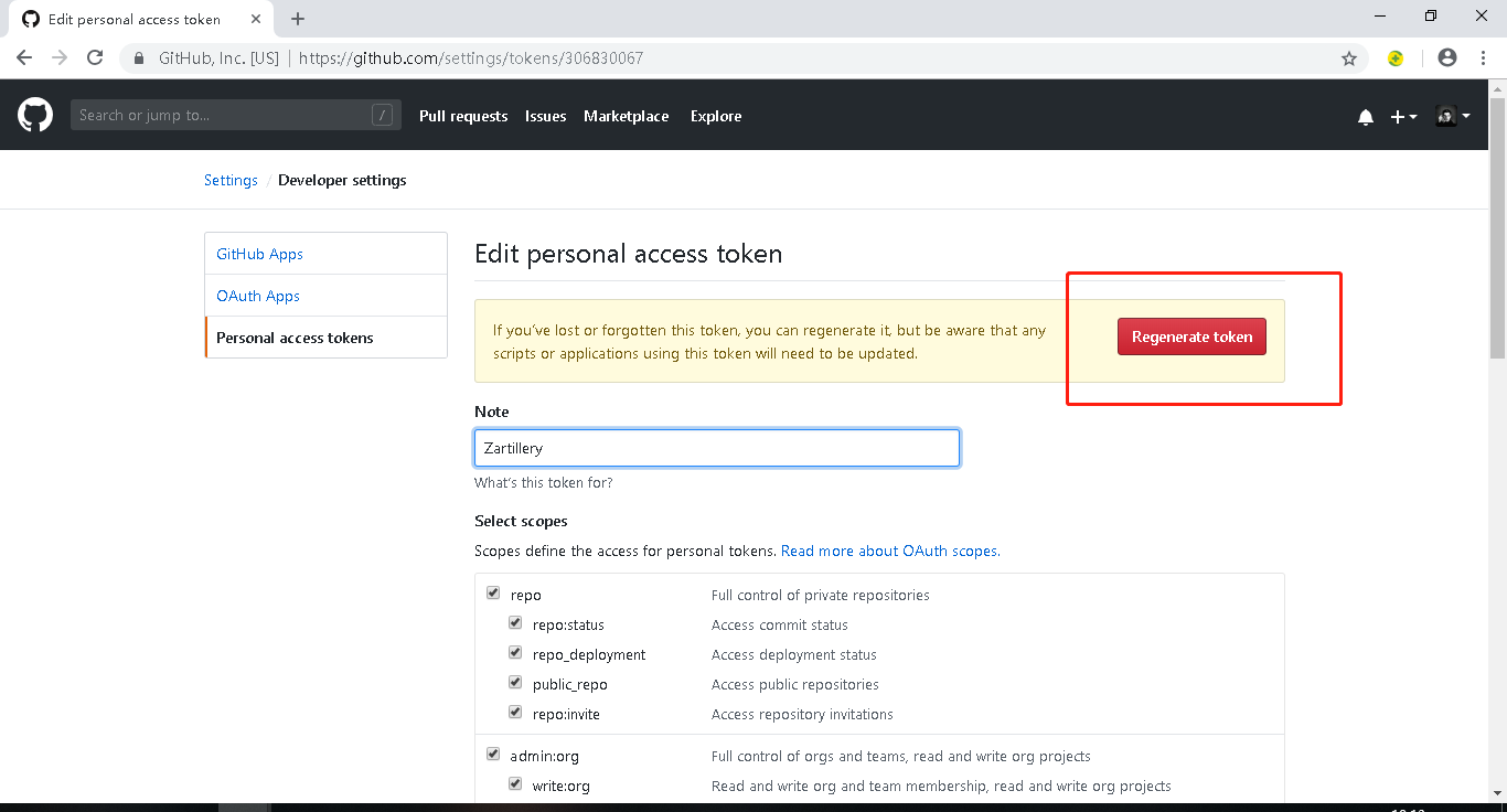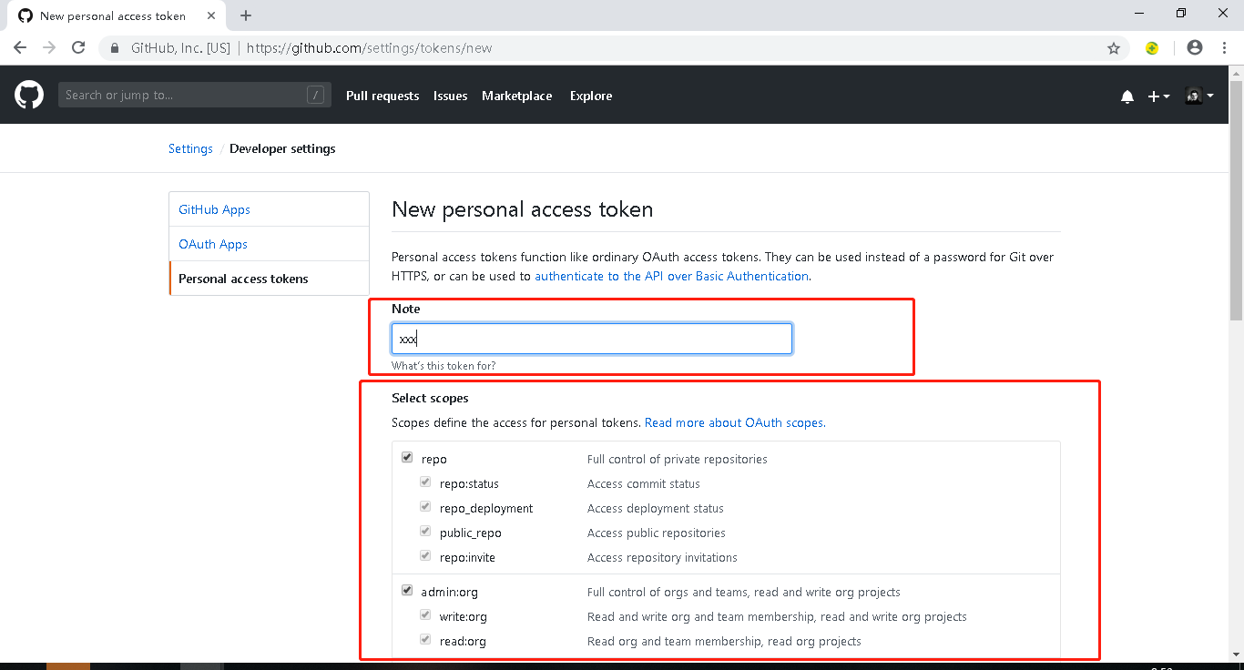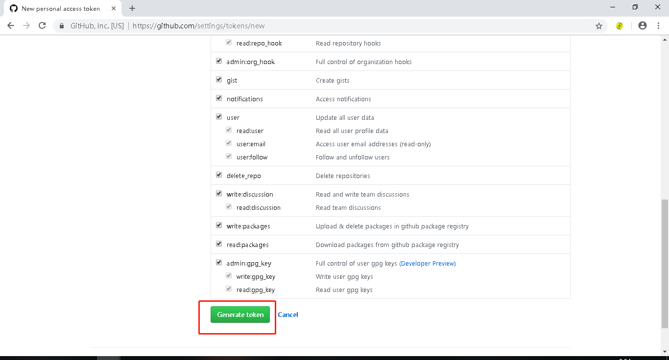 输入创建token的标记,并将下面的所有选项勾上,最后确定