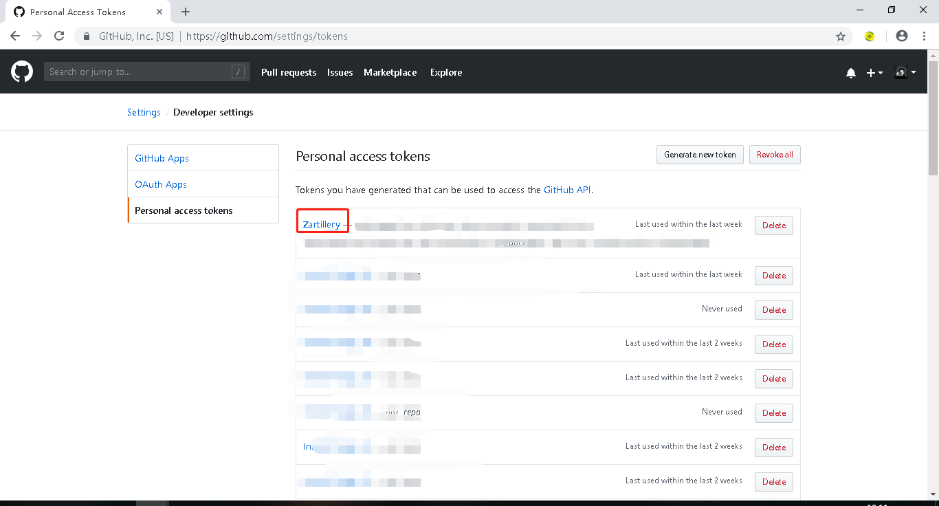 当你下次打开idea时可能token会失效,登录GitHub网站,点击你的token标记去重新获取token