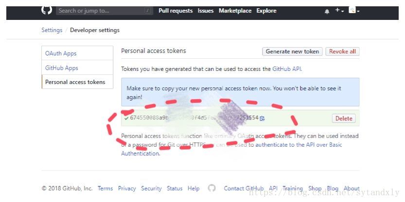 跳转页面显示的一大长串字符就是你的GitHUb token