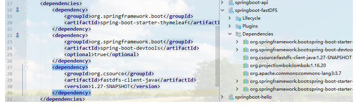 至此,更新项目Maven,pom.xml文件就不会出现找不到fastdfs-client-java依赖了。(成功导入fastdfs-client-java依赖)