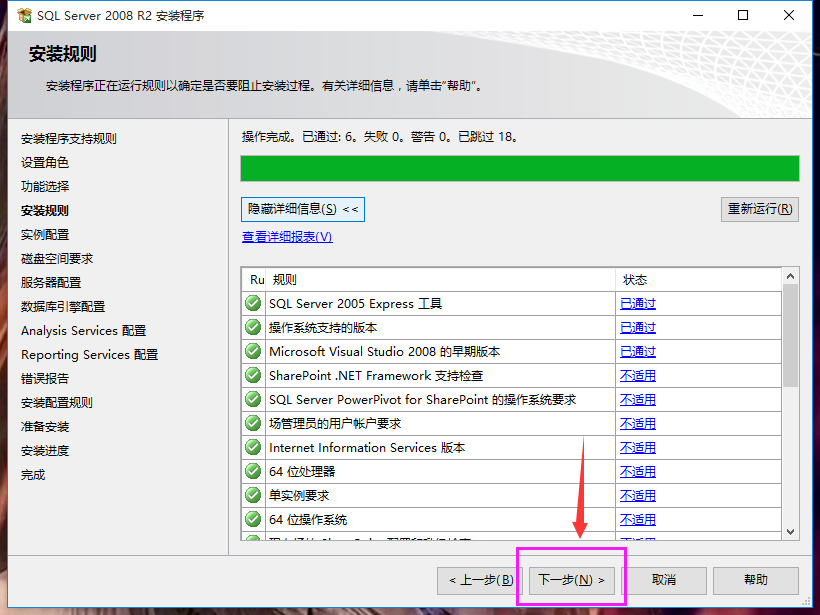 25、安装配置规则界面,等待进度条加载完毕,点击“下一步”,如下图: