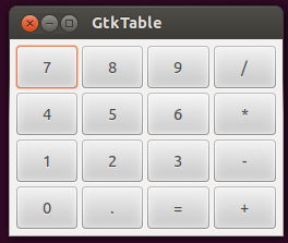 该代码将会生成16个按钮并把他们布局 在GtkTable容器构件中.