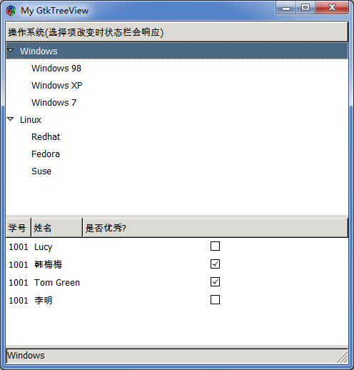 尽管可以选择多种不同的models, 但只需要一种view构件. 它可以用于listview或treeview模式. 使用GtkTreeView不难, 它需要GtkTreeModel来了解从哪里取得它的数据: