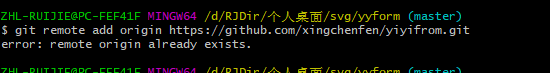 (如果报错: unable to access 'https://github.com/xingchenfen/yiyifrom.git/': OpenSSL SSL_connect: Connection was reset in connection to github.com:443,可以git config --global http.sslVerify "false" 解除ssl认证 (没有ssl证书引起的)再次git pull 可以啦)