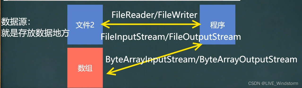 是指程序从一个特定的数据源读写文件,比如常用的FileReader,FileWriter。