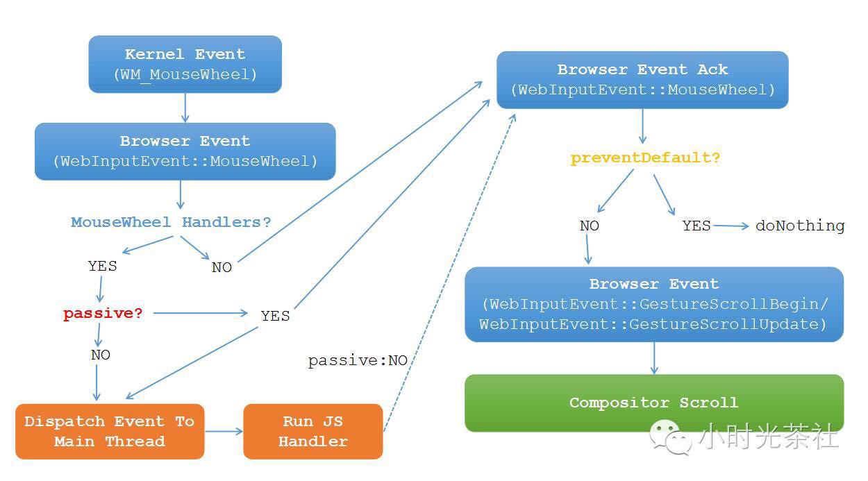 介绍完这里,大家应该明白Chrome浏览器为什么需要Passive Event Listeners特性了。接下来,我们来看看Passive Event Listeners特性是怎么实现的。