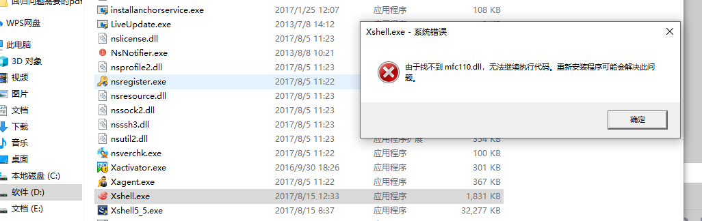 2、遇到“xshell启动遇到“由于找不到mfc110.dll,无法继续执行代码的解决方法”