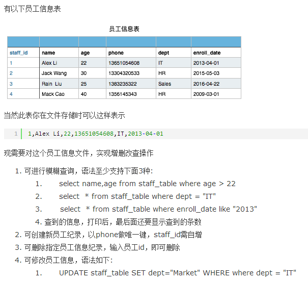 1本次作业通过空格及逗号,将文件拆分成列表,在通过判断add、del、update、select等关键字,来判断用户执行的是哪种命令,根据不同的命令调用不同的函数去处理。