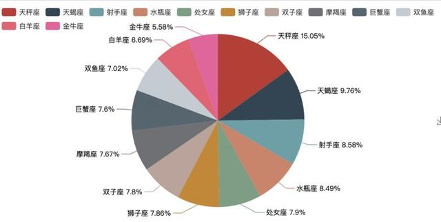 抛开年龄,我们看星座,天秤座的粉丝是最多的占到了15%,而天蝎座与射手座的粉丝数量位居其次,接近有9%的比重。不同的年龄阶段以及不同的星座,对应着不同的性格特征与喜好,或许商家品牌方在做广告以及市场营销的时候可以针对自己的目标人群精准推销以提升产品的销量