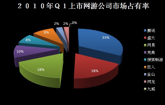 排名榜尾的三家公司金山、网龙、九城则各有问题。金山明显处于调整期,在盛金合作未卜之际2010年应不会有太大起色。九城截止至今日尚未公布第一季度财报,但结合《名将三国》在线人数下跌,原创乏力以及业务重组等实际情况,九城今年也难有太大作为。唯一存在变数的是网龙,尽管当家产品《魔域》用户流失严重,但是这家公司去年投入2亿重金做为研发费用,自研产品的成败也将决定今年网龙的市场走势。