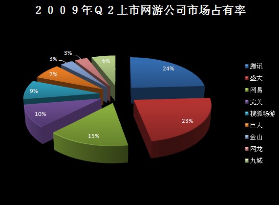 盛大与网易依靠传统产品的稳定表现保证了自己的市场份额,二者分别以19%和13%位居2009年度市场占有率的二、三位。盛大公司的《热血传奇》和《传奇世界》老而弥坚,网易公司的《梦幻西游》上线人数再创新高,使得二者在市场上立于不败之地。