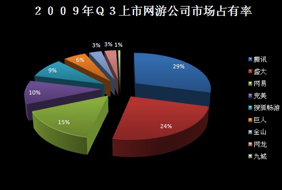 三、2009分季市场份额对比:腾讯优势明显,九城失《魔兽》影响大