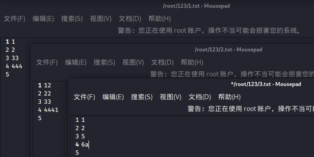 3、新建几个有重复内容的文件,放到一个与python脚本不在一起的位置/root/123