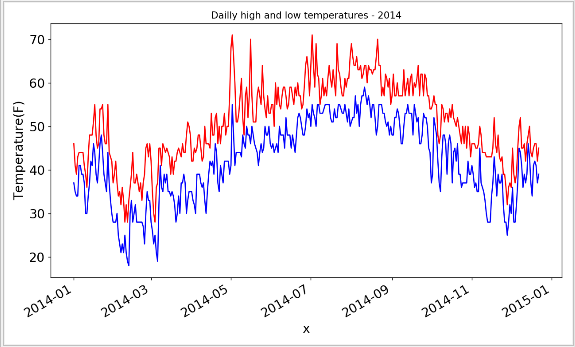 # 上图显示了大量意义深远的数据,但我们可以在其中再添加最低气温数据,使其更有用。