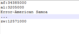 # 制作地图前,还需要解决数据存在的最后一个问题。Pygal中的地图制作工具要求数据为特定的格式: