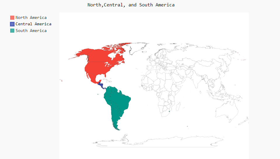 # 为演示如何使用Worldmap ,我们来创建一个突出北美、中美和南美的简单地图
