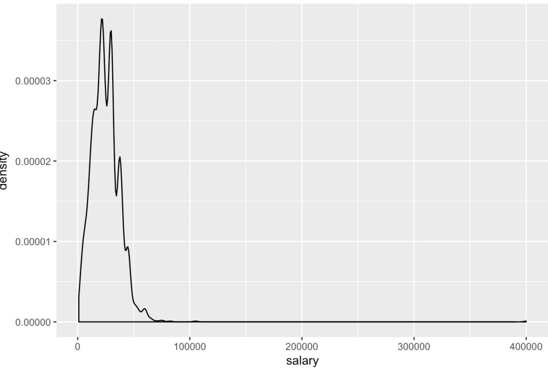 options(scipen=200)就是用来处理坐标轴的科学计数法,并且我们的x轴不需要那么大的范围,因此使用xlim(0,80000)来调整,这样我们就做出了漂亮的密度分布图