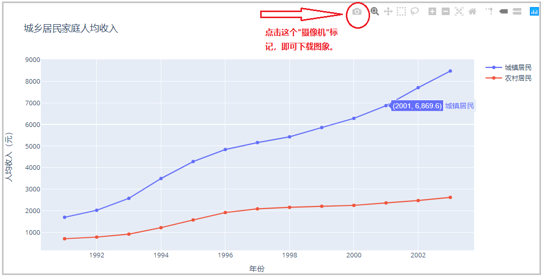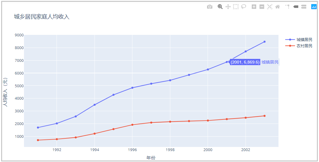 trace0 = go.Scatter(x=df["年份"],y=df["城镇居民"],name="城镇居民")