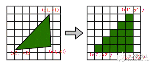 - 光栅化:光栅化是将几何数据经过一系列变换后最终转换为像素,从而呈现在显示设备上的过程。光栅化的本质是坐标变换、几何离散化。