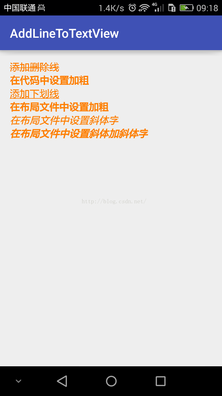 以上就是友好日记本最近收集整理的关于Android 对TextView添加删除线,下划线,加粗,斜体等效果的全部内容,更多相关Android内容请搜索靠谱客的其他文章。