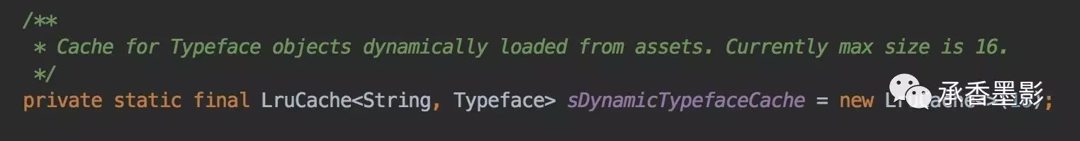 而 sDynamicTypefaceCache 是一个基于 Lru 算法的,最大存储 16 个字体的一个缓存。