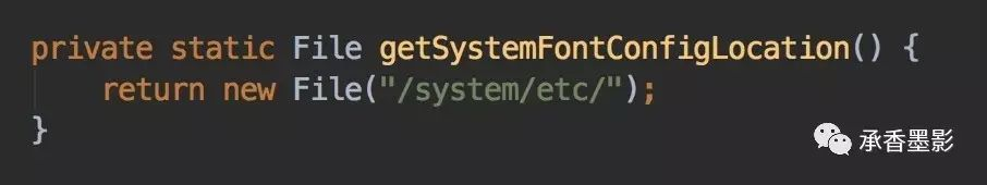 秉承了 Linux 的传统,所有的配置都写在文件里,这里也是直接从文件里读取,getSystemFontConfigLocation() 方法获取到的只是一个配置的路径,最终读取的是 FONTS_CONFIG 配置的 fonts.xml 文件。