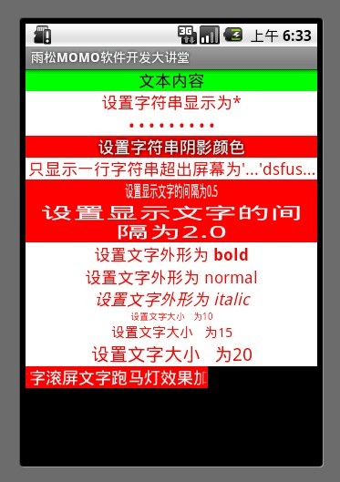 - android:text="雨松MOMO的博客:http://blog.csdn.net/xys289187120"