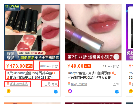 采集的数据有:商品价格;付款人数;商品标题;店铺url;店家地址;