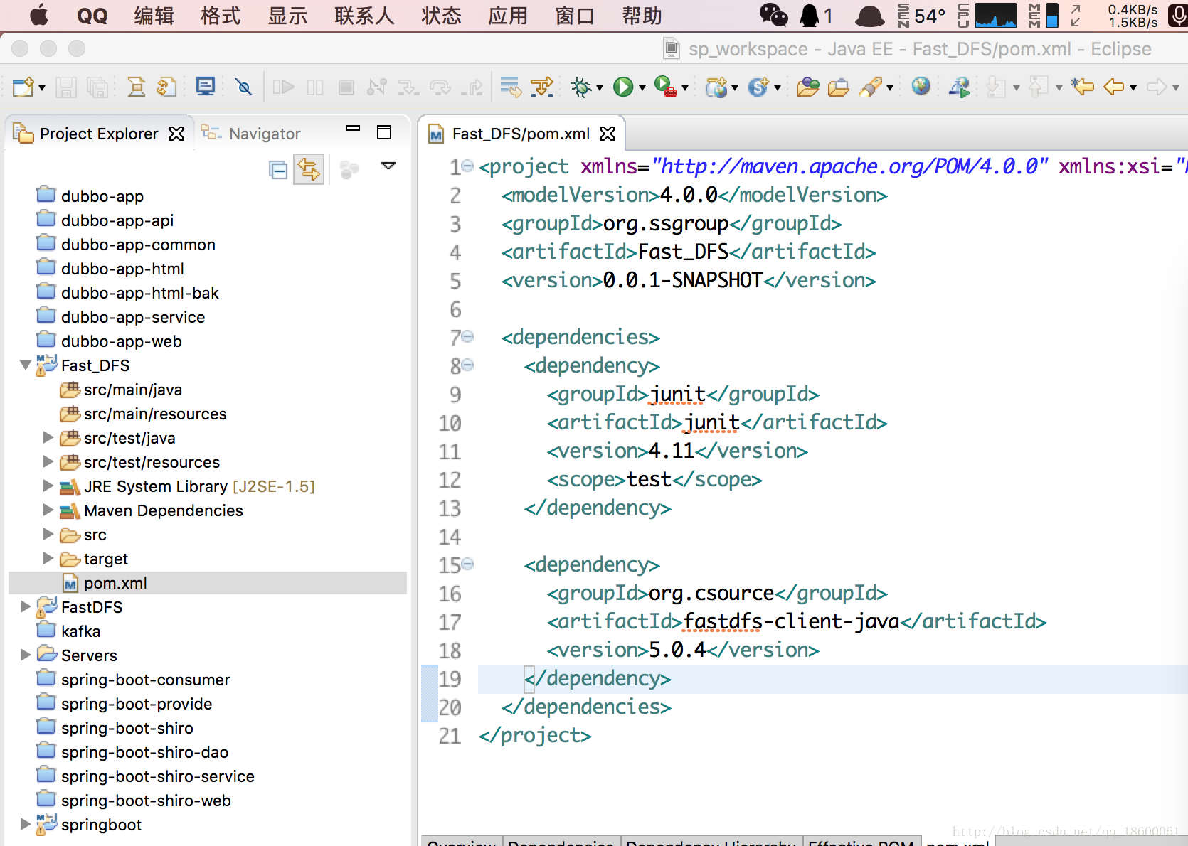 4、创建一个maven项目,在pom中添加 fastdfs_client 依赖。